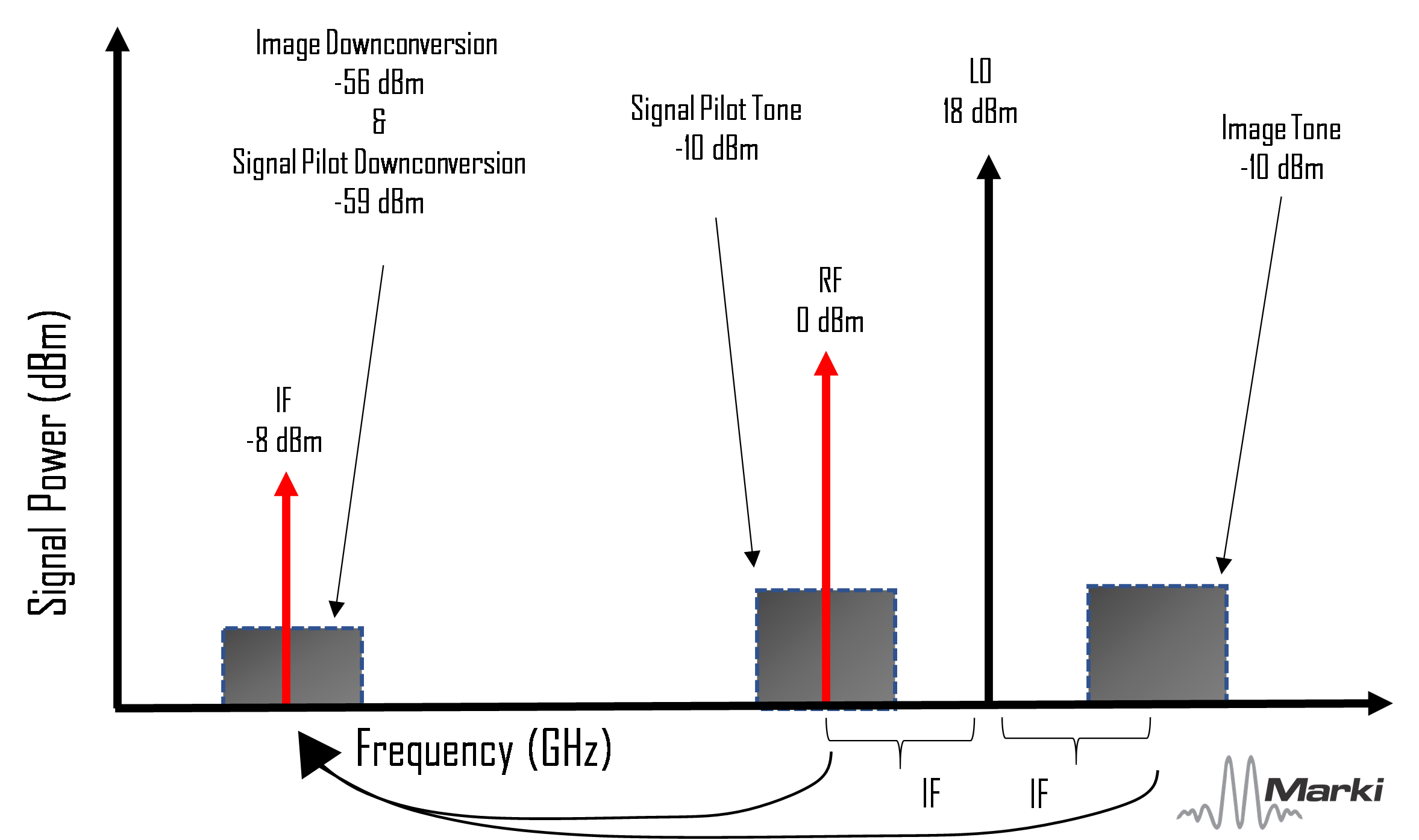 - fLO±fIF We already know from the RF case that noise at the RF band and image band can mix with the LO and downconvert to the IF band; however, what is less intuitive is that the same exact thing can happen at the LO port of our mixer. Due to reflections within our converters, noise present at these frequencies (fLO+fIF) can remix with the LO and downconvert to our IF.