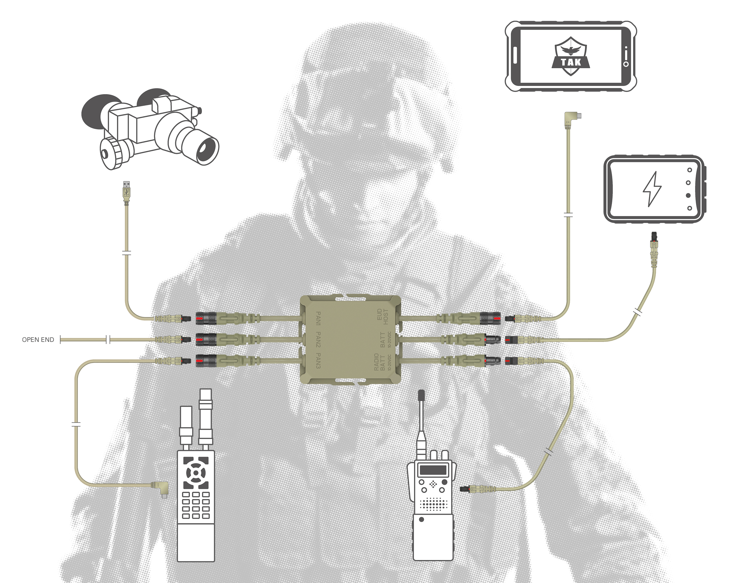 The cable catalog offers options for integrating EUDs, batteries, radio systems, and devices such as helmet cameras and target acquisition or range-finding systems into soldier-worn gear. It delivers a comprehensive tactical connectivity solution tailored to the rigorous demands of modern warfare.