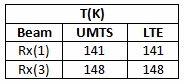 Likewise, the noise temperature at the antenna terminals, for the receiving beams, are: