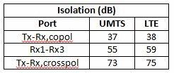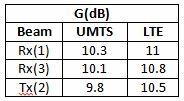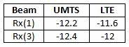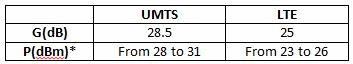 For the EIRP, the UMTS values obtained are between 37.5 to 40.5 (43.5) dBm, and the values for LTE span from 33 to 36 (39) dBm.