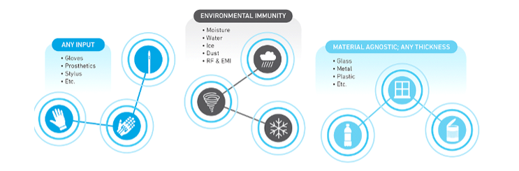 Qorvo MEMS force sensors are silicon-based devices mounted on a printed circuit board (PCB). PCB manufacturing is extremely mature, reliable, and cost-effective. Using a MEMS force sensor eliminates the challenges with capacitive touch and slide and simplifies manufacturing—it’s a tiny, commercially available device mounted on a very small PCB. They allow the use of any input and any material with high environmental immunity.