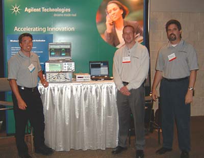 Agilent Technology highlighted its Connected Solutions -- the integration of Agilent Advanced Design System (ADS) software and Agilent instrumentation. The combination of simulation and measurement enables the sharing of signals, measurements, algorithms, and data in both directions between the two domains. Pictured above are (from left to right) Keefe Bohannan, applications engineer, EEsof EDA; Jeff Murphy, application engineer, RF/Microwave; and Chris Mueth, business development manager, EEsof EDA.