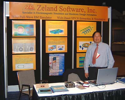 Zeland Software showcased IE3D 10.2, the latest iteration of its full-wave, method-of-moments-based 3D electromagnetic (EM) simulator. IE3D 10.2 features an Ultra-fast Adaptive Optimizer, which employs global and local optimizer and other advanced technologies to achieve optimum results in the fewest possible EM simulations. The new release also integrates the ADIX into MGRID with improved IE3D, DFX, ACIS, and GERBER bi-directional conversion. Dr. Jian X. Zheng, president, is pictured in the Zeland booth, above.
