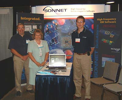 It was my pleasure to have an impromptu lunch Tuesday with a group from Sonnet Software that included Dr. James Rautio (president), Jean Rautio (CFO), and Shawn Carpenter (VP of marketing and sales). During the meal, Dr. Rautio informed me that the MTT-S recently named him Distinguished Microwave Lecturer. For the next 3 years, he will travel internationally in this capacity, speaking about the life and research of James Clerk Maxwell. Look for him at an MTT-S chapter near you! Above, the Rautios and Carpenter pose in the Sonnet booth.