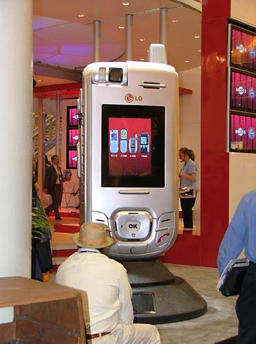 LG obviously felt that bigger was better for its booth. Giant cell phones slid or flipped open to reveal their huge displays, which then played a video presentation for visitors.