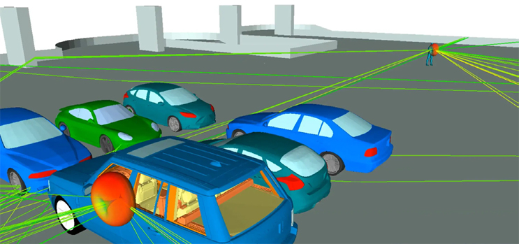 Wireless InSite includes advanced capabilities including time-based mobility, lunar propagation modeling, and wideband ray-tracing with S-parameter outputs. Create dynamic scenarios and simulate how movement of devices and vehicles affects multipath, coverage, and wireless communications.