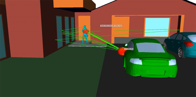 Define moving platforms, including geometry for objects in motion (people, vehicles, aircraft), as well as vehicle-mounted or handheld RF devices and their antennas. Movement can be specified in terms of waypoints, including changing coordinates and orientations (Euler angles). These can either be at points in time or used with a fixed velocity, allowing dynamic scenarios–potentially with multiple people, vehicles, or devices in motion.