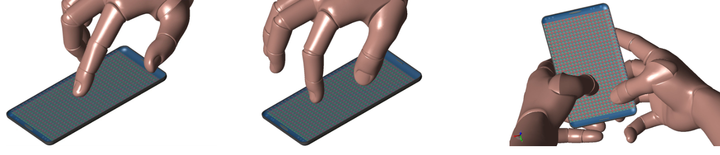 Using XF’s Poseable Hands, many configurations of typical touchscreen usage can be evaluated.